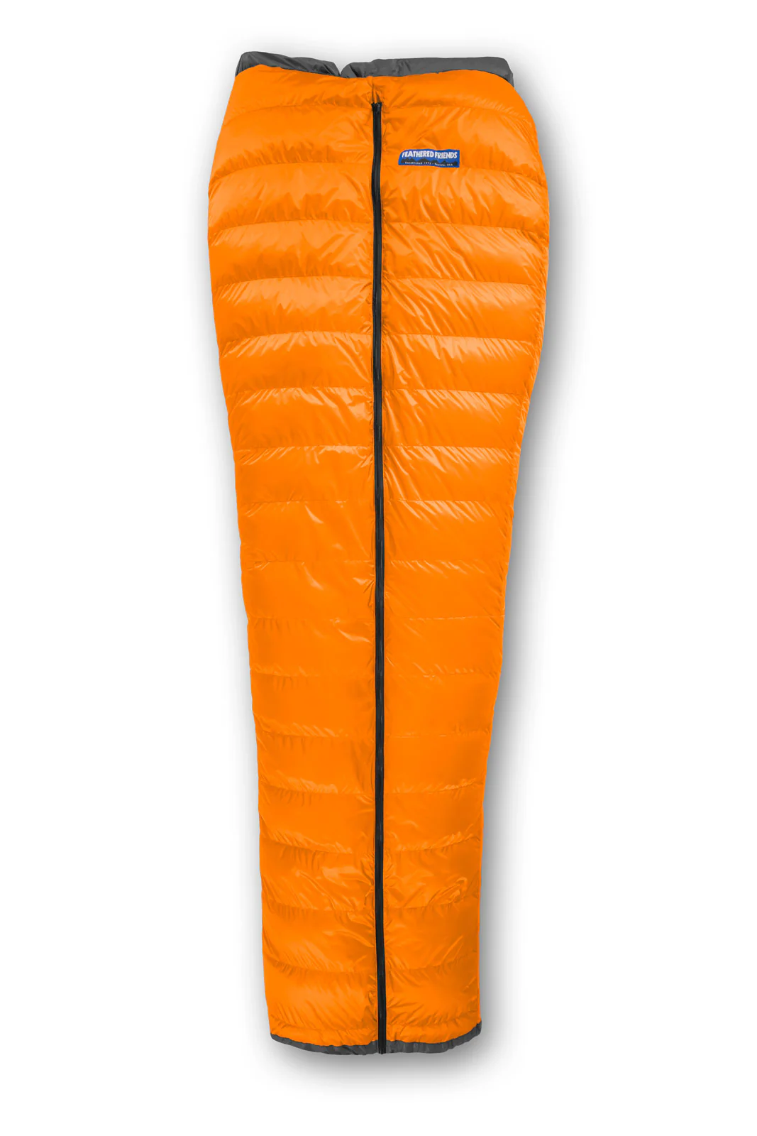 We created the Flicker to achieve maximum comfort and versatility without compromising on weight. Unzipped, it functions as a large quilt on warmer nights and is wide enough to cover two adults in a pinch. The footbox can be cinched tight and partially zipped for greater efficiency on cooler nights. At the bottom end of the temperature rating, the Flicker functions as a full center-zip mummy sleeping bag. With 950+ fill power down and ultralight Pertex® Endurance® fabric, the Flicker series is ideally suited for those chilly summer nights in the alpine or on a thru-hike.